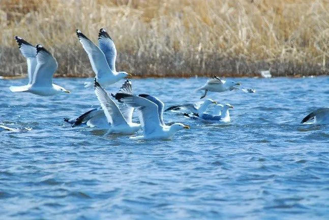 广阔的湖面,金黄的苇丛,成群的飞鸟在这里聚集,这片富饶的秘境深受着这些天空的宠儿的喜爱。它们在湖面滑翔,在湖中游曳,在芦苇间穿梭,这里是它们的乐园,欢乐在这里衍生。